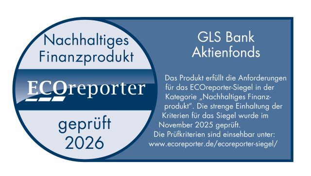 Dies ist eine Marketing-Anzeige. Bitte lesen Sie den Verkaufsprospekt des GLS Bank Aktienfonds und das KID , bevor Sie eine endgültige Anlageentscheidung treffen. Investitionen in Aktien sind mit Risiken verbunden. Aktienkurse können stark schwanken und zu Verlusten führen. Der Wert Ihrer Anlage kann sinken oder steigen. Informieren Sie sich umfassend über alle Risiken, bevor Sie eine Investitionsentscheidung treffen.
