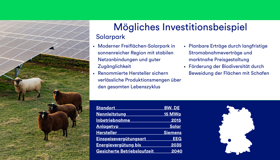 | Langfristige Renditechancen mit realwirtschaftlichem Bezug | Technische Störungen, Ertragsausfälle, Vertragsrisiken |